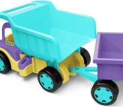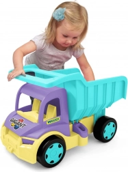 Odkryj super wytrzymałą wywrotkę WADER Gigant w atrakcyjnym fioletowo‑turkusowym połączeniu kolorów. Dzięki długości 55 cm, otwieranej skrzyni z wygodnym uchwytem oraz zaczepom z przodu i z tyłu poradzi sobie z przewożeniem zabawek, piasku i drobnych skarbów. Solidna konstrukcja o udźwigu do 150 kg gwarantuje stabilność nawet podczas najbardziej wymagającej zabawy.
