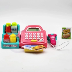 W zestawie znajduje się także półka z artykułami, banknoty, monety, karta płatnicza i pudełko „ciasteczek”, więc dzieci mogą stworzyć własny mini sklep. Zabawa rozwija komunikację, motorykę małą, kreatywność i wyobraźnię.