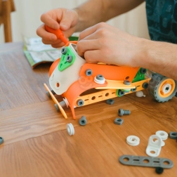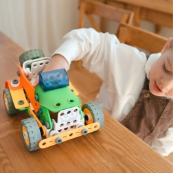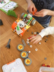 Zestaw konstrukcyjny Woopie STEM 5w1 oferuje wszystko, co dzieci lubią: kolorowe elementy, śruby, koła i narzędzia, dzięki którym mogą łatwo składać, rozkładać i budować na nowo. Dzięki elastycznym częściom powstają oryginalne kombinacje i modele z realnie ruchomymi elementami.