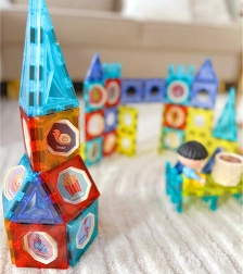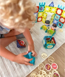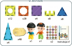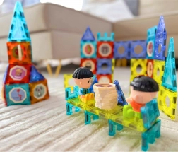 Silne magnesy umożliwiają dzieciom szybkie budowanie i przebudowywanie. Konstrukcje trzymają kształt i zachęcają do dalszych eksperymentów z formami i kolorami.