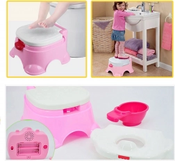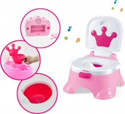Dziecięcy nocnik z muzyką 3w1 marki WOOPIE przyspieszy naukę samodzielnego korzystania z toalety! Nocnik jest idealny dla dzieci dzięki szerokiemu i ergonomicznemu siedzisku, bocznym uchwytom oraz stabilnej podstawie. Dzięki wbudowanym melodiom, które można włączyć lub wyłączyć w dowolnym momencie, czas na nocniku stanie się dla dziecka przyjemną zabawą. Nocnik zaprojektowano tak, aby ułatwić życie rodzicom – jego opróżnianie zajmuje zaledwie chwilę. Złożony nocnik można również używać jako krzesełko lub podest do umywalki. Wykonany z najwyższej jakości i bezpiecznych materiałów.