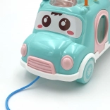 Dzięki kompaktowym wymiarom zabawkę wygodnie się trzyma, przesuwane koraliki na dachu trenują zręczność palców i skupienie. Pastelowe wykończenie i sympatyczny wygląd motywują do samodzielnej zabawy oraz wspólnych aktywności z rodzicami.