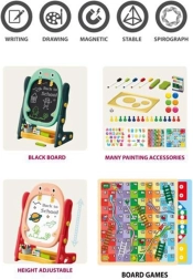 Dwustronna magnetyczna tablica marki WOOPIE to idealne narzędzie do rozwijania u dzieci umiejętności artystycznych i edukacyjnych. Wyposażona w kompletny zestaw akcesoriów, z regulowaną wysokością. Umożliwia w zabawny sposób rozwijać wyobraźnię i edukację dziecka.