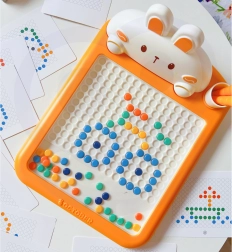 Magnetyczna tablica MagPad to doskonała pomoc w rozwoju dziecięcej kreatywności i umiejętności manualnych. Częścią zestawu są 2 magnetyczne pisaki w kształcie marchwi i 70 magnetycznych guzików, które dzieci mogą wykorzystać do tworzenia własnych wzorów i mozaik. Dzięki prostym zasadom działania obsługa jest łatwa, co wspiera samodzielność i kreatywność dziecka.