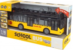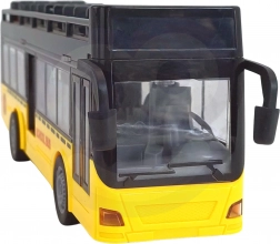 Ten autobus dla dzieci od 3 lat jest wykonany w skali 1:16 i wyposażony w funkcję friction drive, która umożliwia łatwe napędzanie do przodu. Zabawka oferuje realistyczne efekty świetlne i dźwiękowe, które można aktywować za pomocą przycisków. Wewnątrz pojazdu miga niebieskie światło, co przyczynia się do zabawy dzieci.