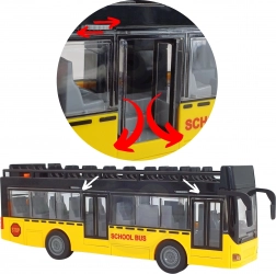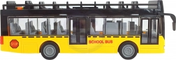 Ten model szkolnego autobusu przedstawia realistyczny wygląd z napisem 'SCHOOL BUS' i otwartymi oknami. Doskonały do poznawania designu pojazdów.