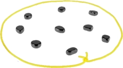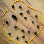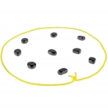 - Zawartość: 20 magnetycznych kamyków o różnych kształtach, żółty sznurek do wyznaczenia pola gry, materiałowy woreczek, instrukcja