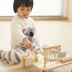 Każdy element stolika skrywa inny fascynujący instrument, który zachęca do eksperymentowania i tworzenia własnych melodii. Ta wielofunkcyjna zabawka jest zaprojektowana tak, aby wspierać zmysłowy i kreatywny rozwój dzieci już od 18 miesięcy.