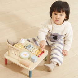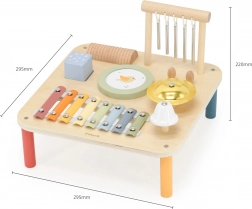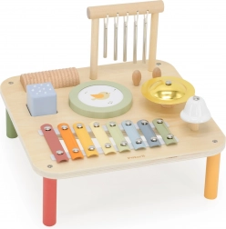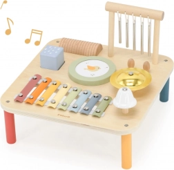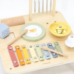 Stolik zawiera różne instrumenty, które pomagają rozwijać słuch muzyczny i poczucie rytmu Twojego dziecka.