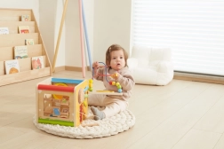 Otwory do wkładania z różnymi elementami geometrycznymi uczą rozpoznawania kształtów i kolorów oraz rozwijają wyobraźnię przestrzenną.