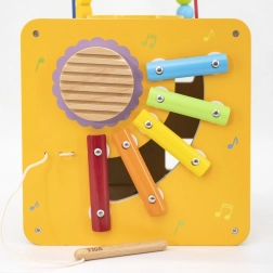 Kolorowy druciany labirynt na górnej stronie wzmacnia chwyt, koordynację oko–ręka oraz ćwiczy cierpliwość i koncentrację.