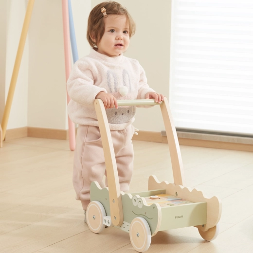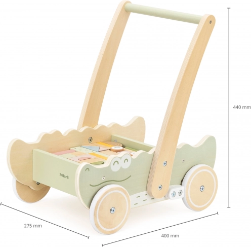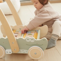 Doświadcz radości z pierwszych kroków z chodzikiem w kształcie krokodyla. Jego stabilna drewniana konstrukcja zapewnia potrzebne wsparcie i pozwala dzieciom bezpiecznie odkrywać świat wokół. Chodzik wyposażony jest w ergonomiczną rączkę, która pomaga dzieciom utrzymać równowagę.