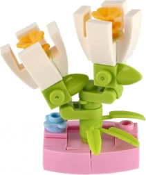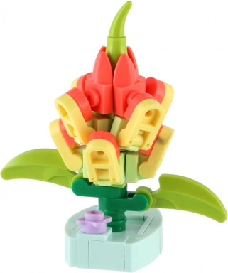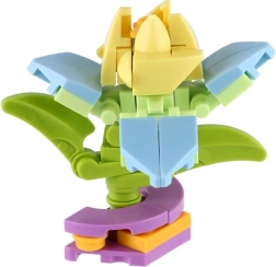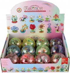 Ten uroczy mini zestaw zamienia każdą kapsułę w kolorową niespodziankę. Każdy kwiat składa się z kilku elementów, które precyzyjnie do siebie pasują, a po złożeniu powstaje dekoracyjny model o wielkości około 6 cm. Dzięki różnym typom kwiatów dzieci mogą zbudować własny mały „kwiatowy ogródek”.