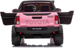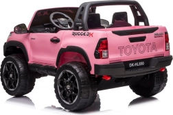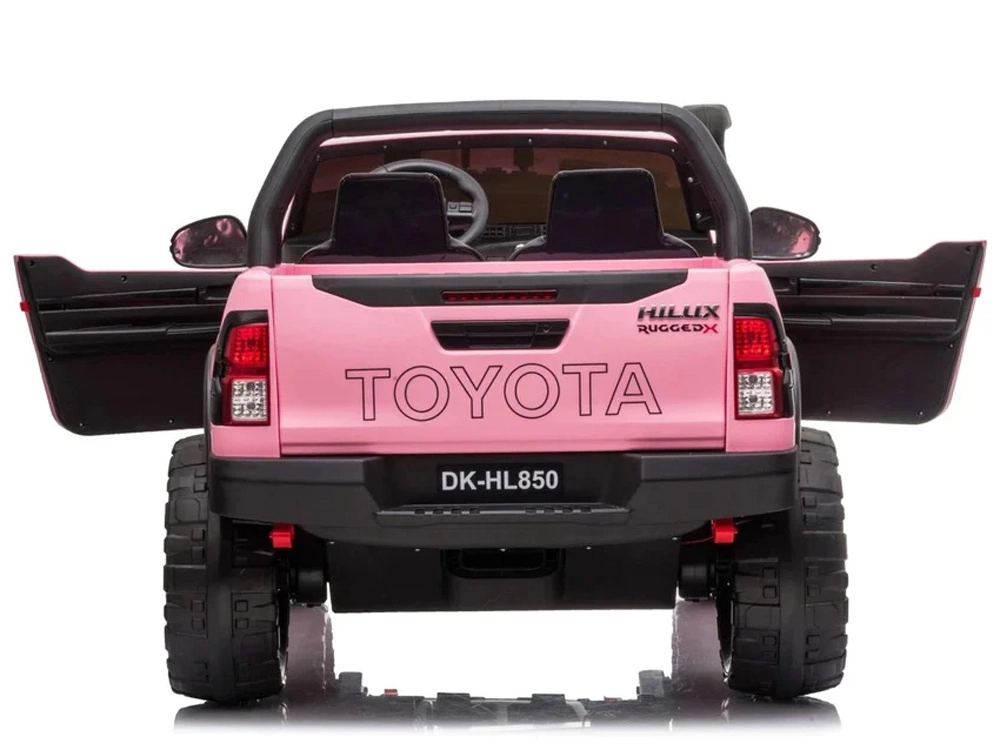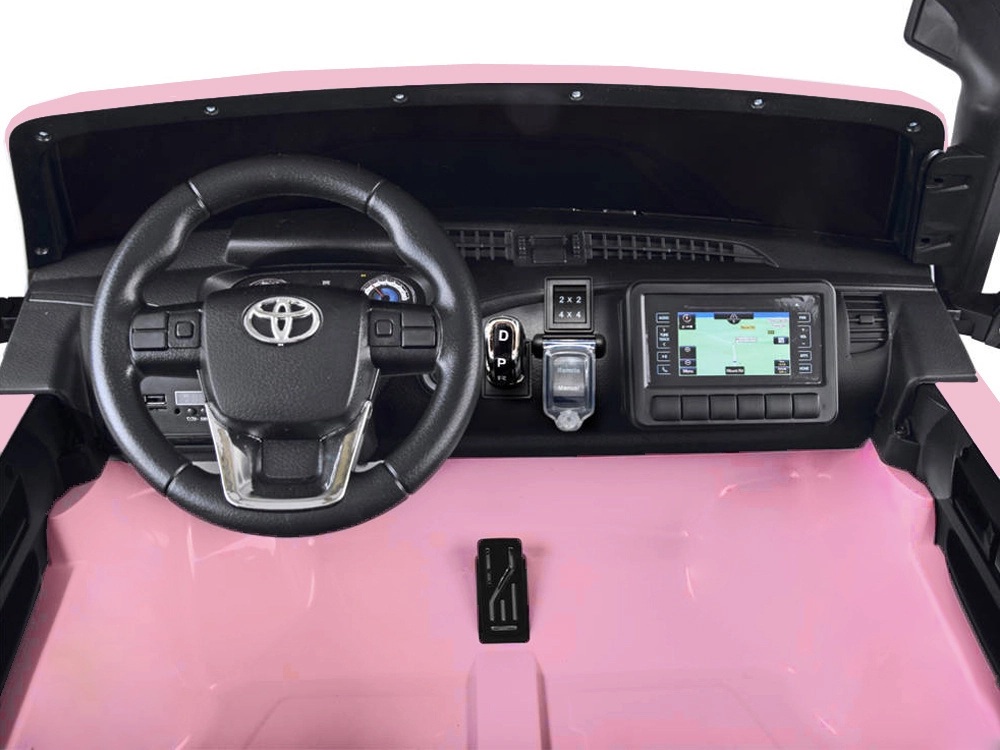 Licencjonowany pojazd dziecięcy TOYOTA Hilux dla dwojga dzieci oferuje napęd 4x4, 4 silniki 12 V (45 W), podwójny akumulator 12 V 10 Ah oraz zdalne sterowanie 2,4 GHz dla rodziców. Dzięki miękkim kołom EVA, podwójnemu skórzanemu siedzeniu, oświetleniu LED i panelowi multimedialnemu (USB/SD/MP3/Bluetooth) gwarantuje komfortową i bezpieczną jazdę po trawie i nierównościach.