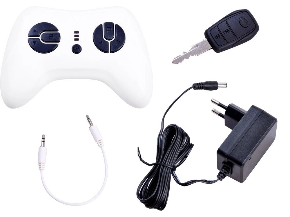 - Pilot 2,4 GHz dla rodziców (przód/tył, lewo/prawo, 3 prędkości, STOP)