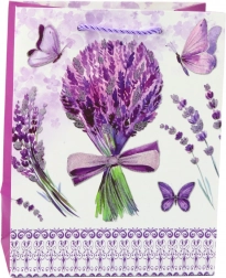 Przedstawiamy papierową torebkę prezentową z czarującym lawendowym motywem i subtelnymi, połyskującymi akcentami. Ten romantyczny design inspirowany pięknem lawendowych pól stanowi idealne opakowanie na prezenty na różne okazje, takie jak urodziny, rocznice czy spotkania towarzyskie.