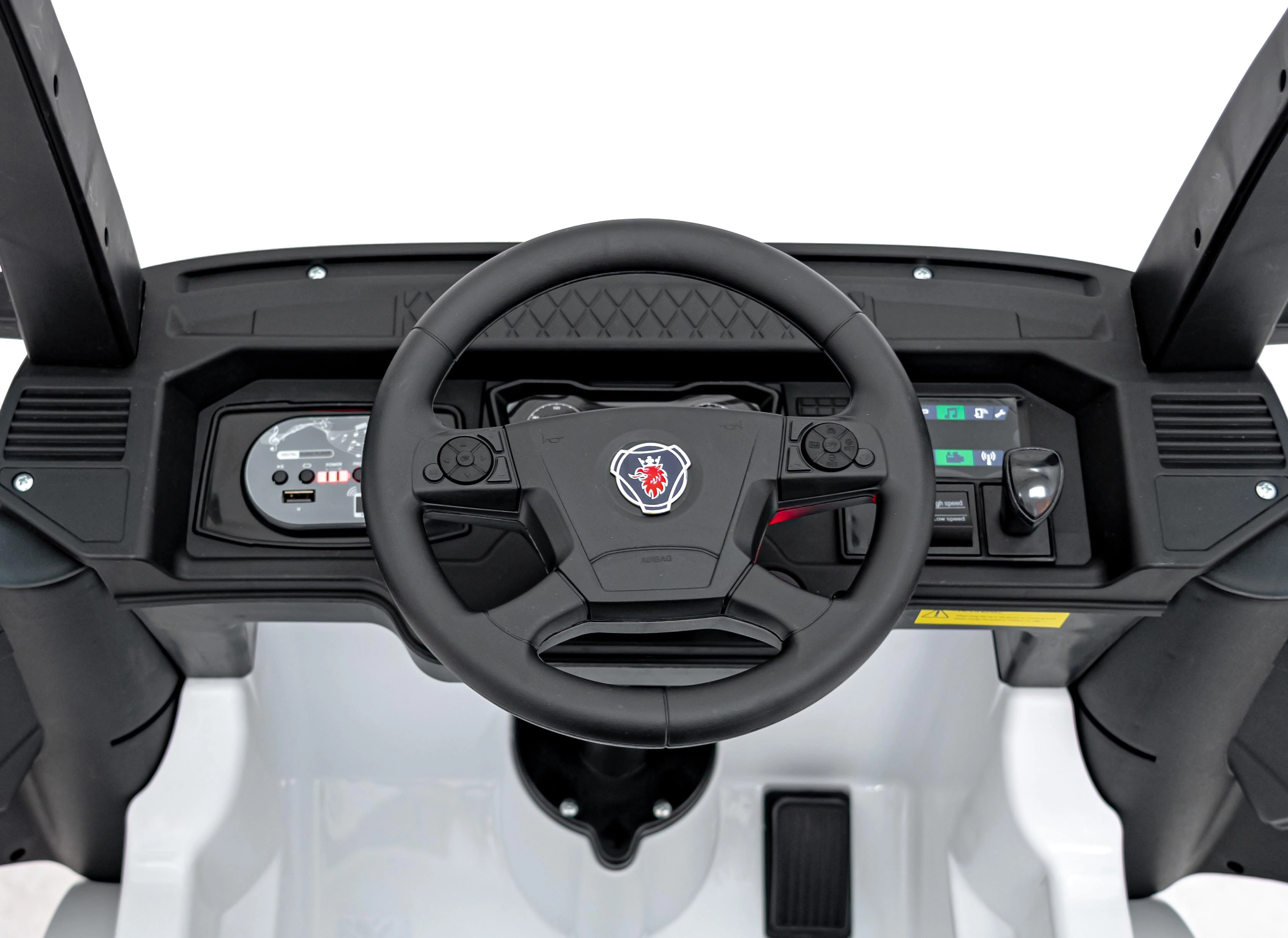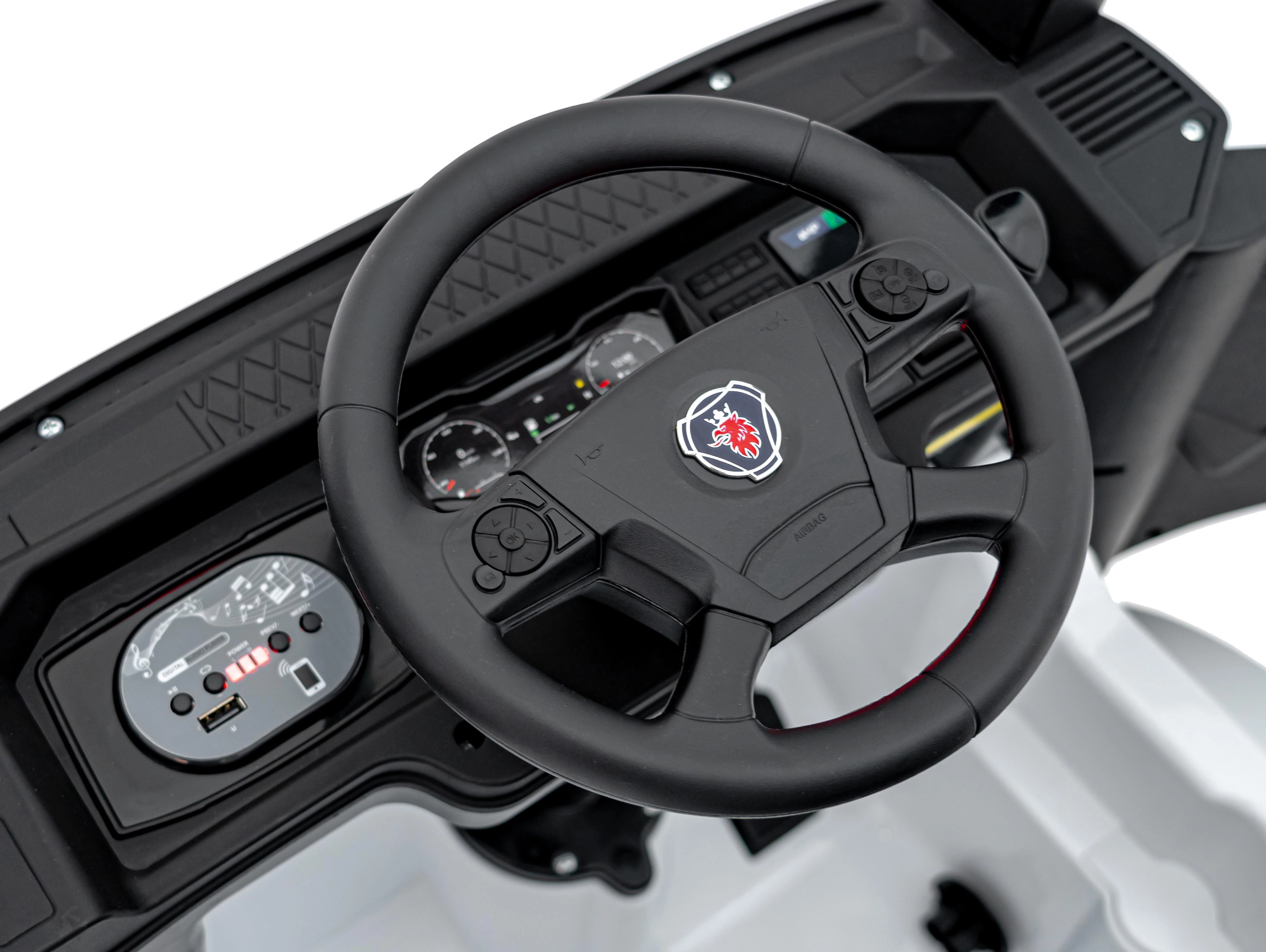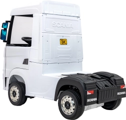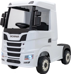 Realistyczna dziecięca ciężarówka SCANIA R‑SERIES w eleganckim białym kolorze zapewnia dzieciom autentyczne wrażenia z prowadzenia. Wydajny napęd 4x35 W, podwójny akumulator 2x12 V 7 Ah oraz komfortowe siedzisko z eko skóry z pasami bezpieczeństwa gwarantują wygodną i bezpieczną jazdę. Rodzicielski pilot 2,4 GHz z funkcją Stop, światła LED oraz panel multimedialny z Bluetooth/MP3/USB dbają o rozrywkę i kontrolę.