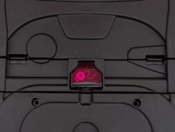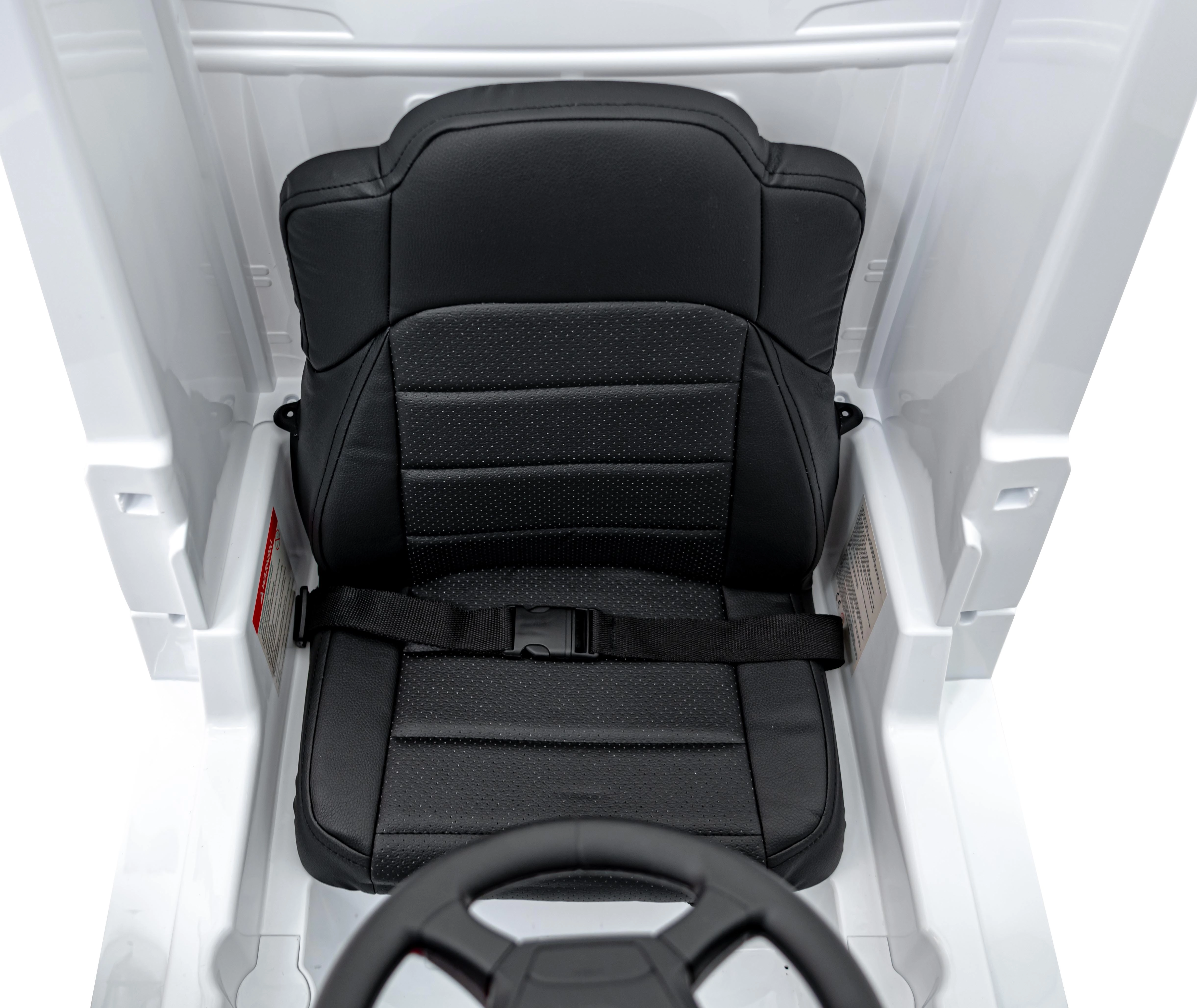 Zintegrowany panel audio z odtwarzaniem z MP3, Bluetooth i USB urozmaici przejażdżkę ulubioną muzyką. Ergonomiczne siedzisko z eko skóry z pasami bezpieczeństwa oraz miękkie koła EVA 23×8 cm zapewniają komfort w pomieszczeniach i na zewnątrz.