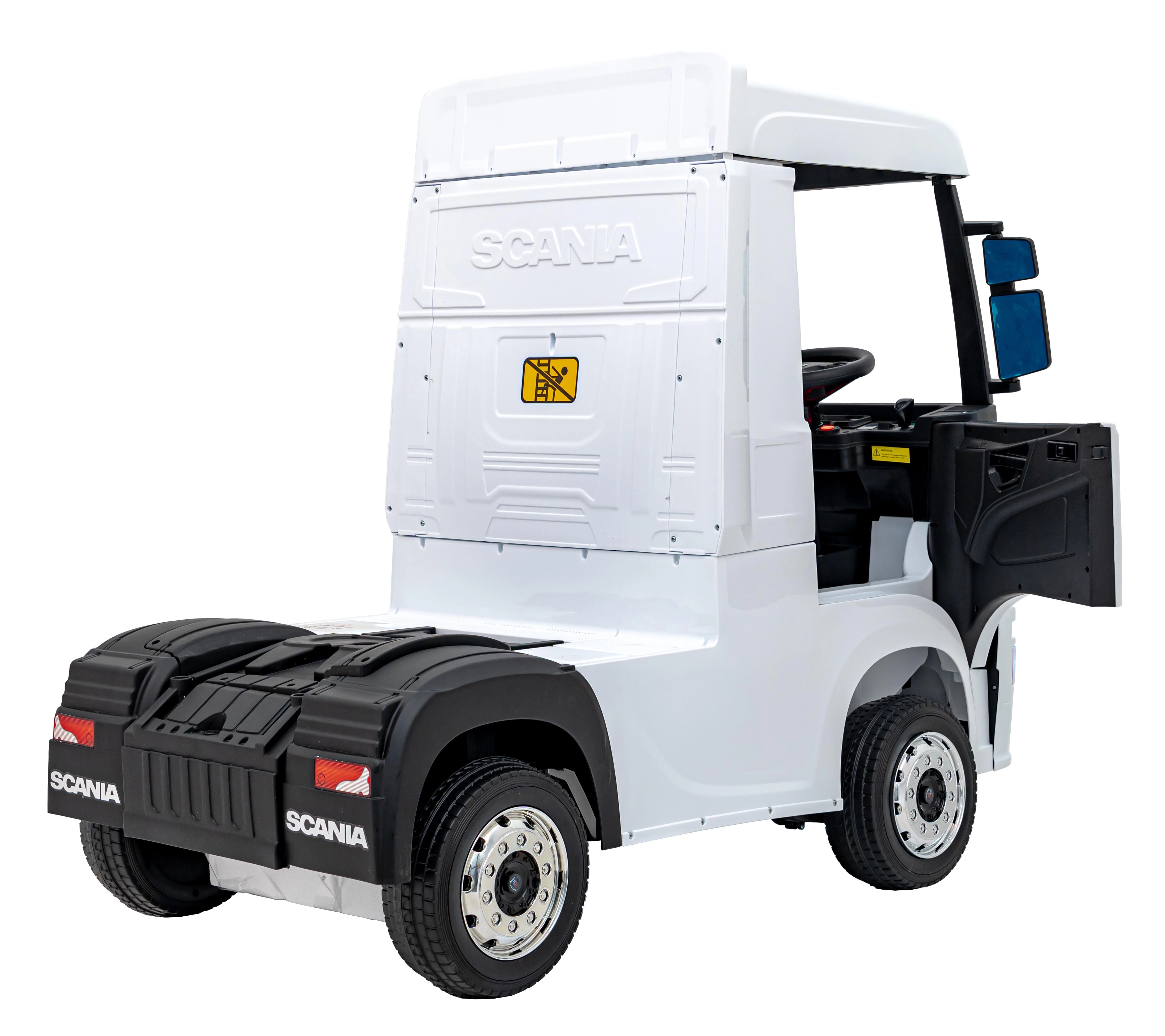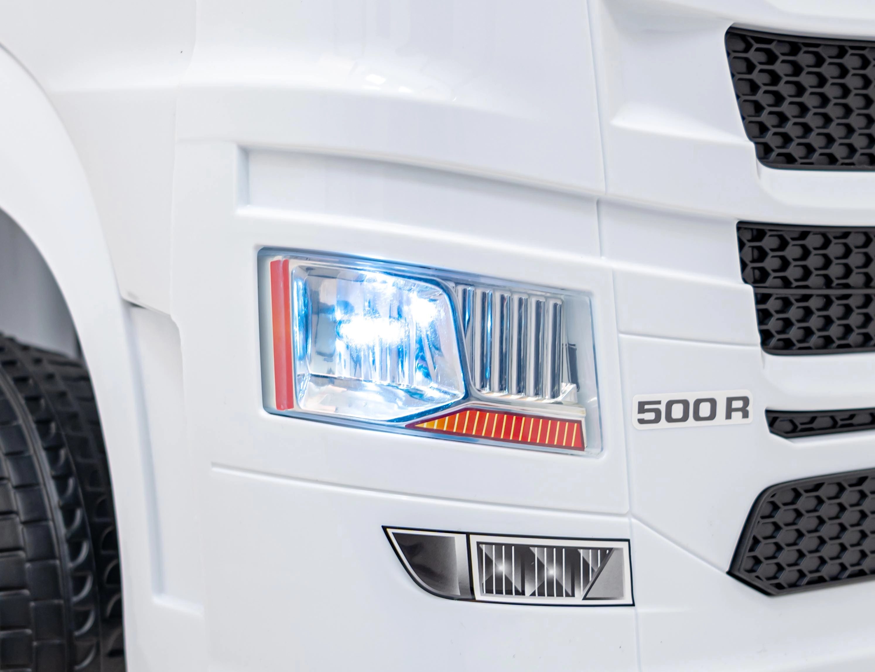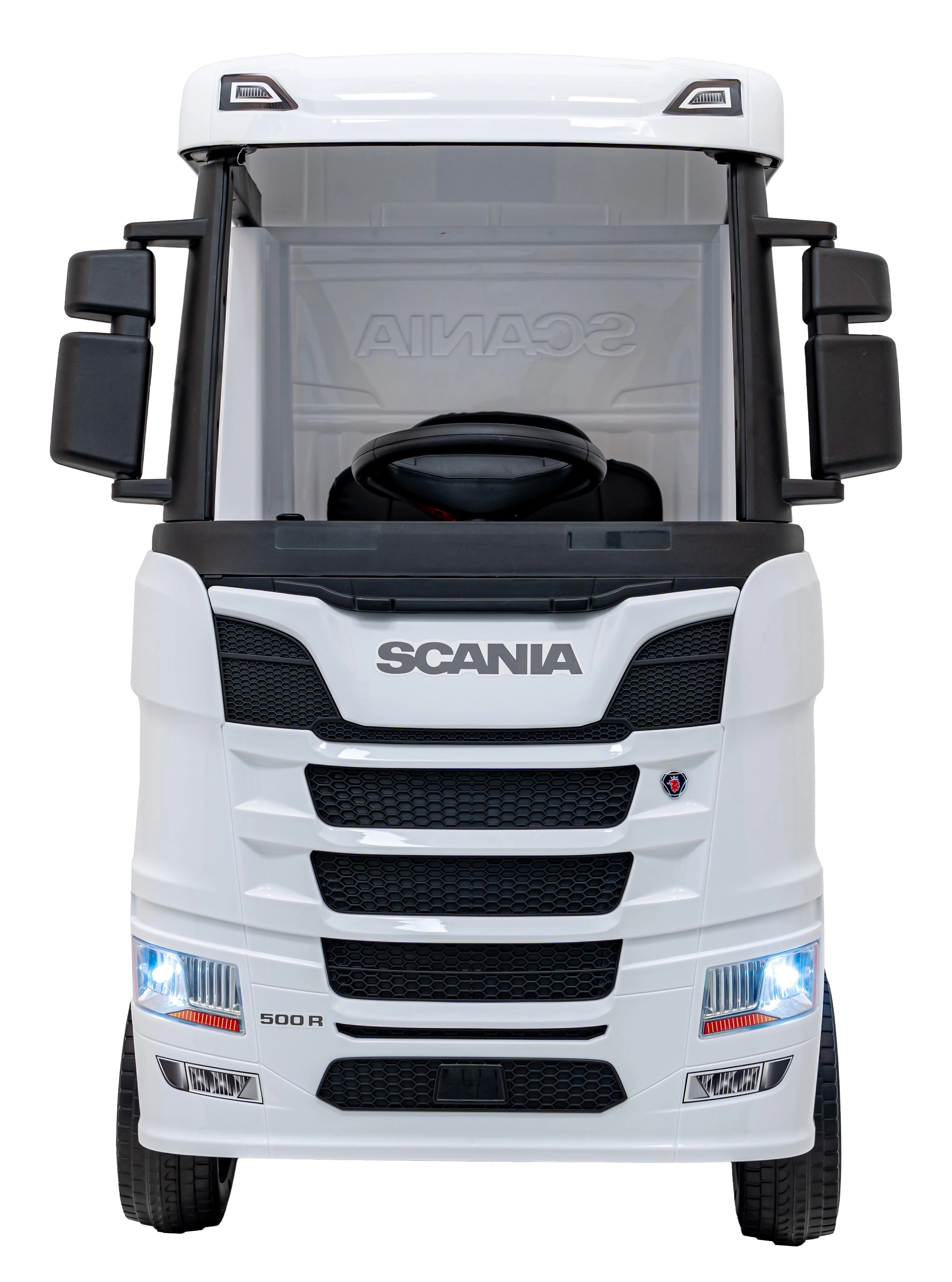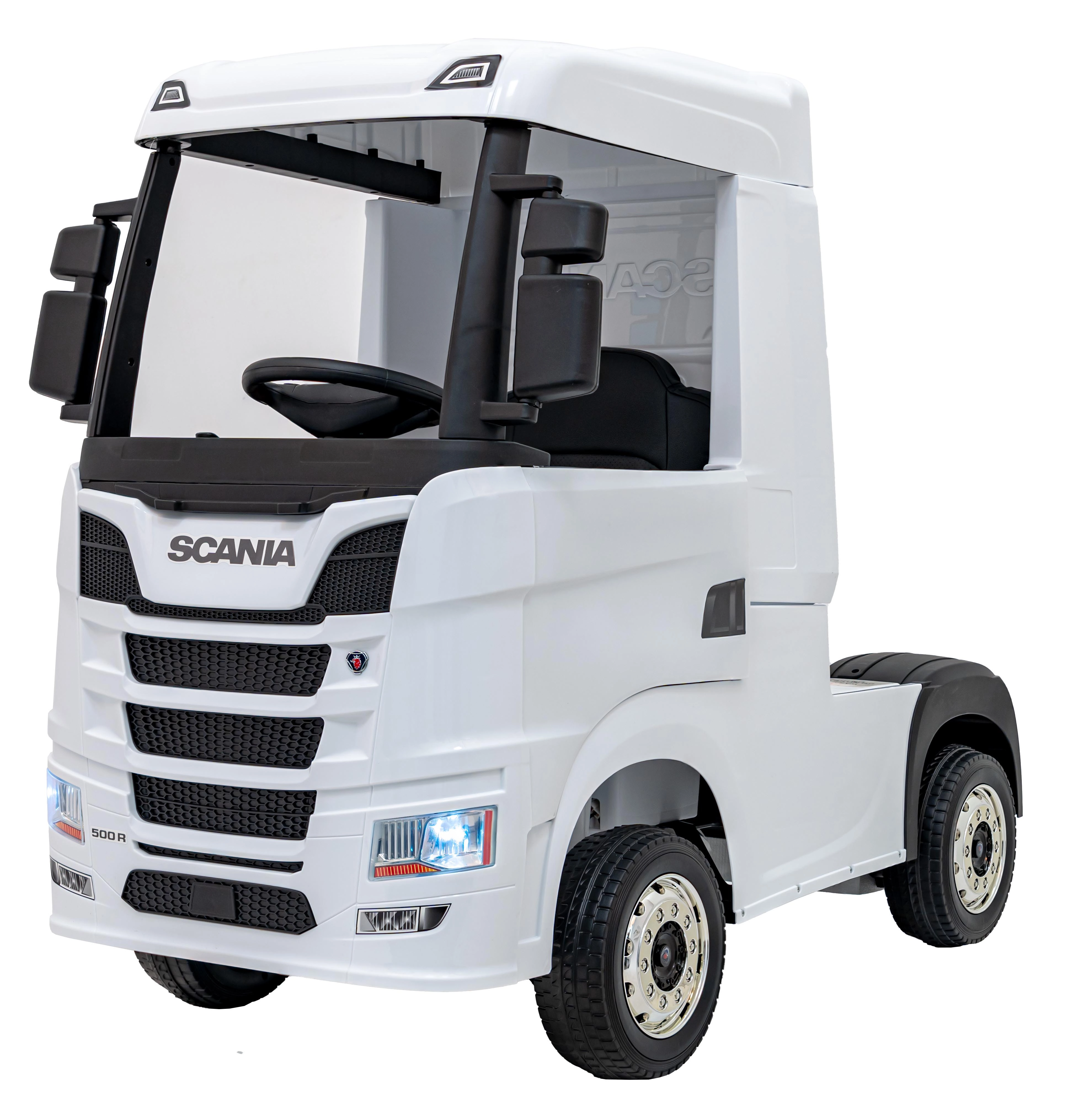 Stylowa elektryczna ciężarówka SCANIA R‑SERIES została zaprojektowana dla małych kierowców kochających wielkie maszyny. Dzięki napędowi 4x35 W i łagodnemu rozruchowi jazda jest płynna i bezpieczna, a przednie światła LED oraz otwierane drzwi podkreślają realistyczny wygląd prawdziwego ciągnika siodłowego.