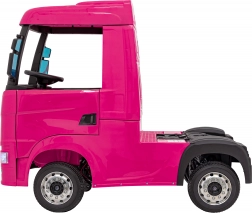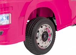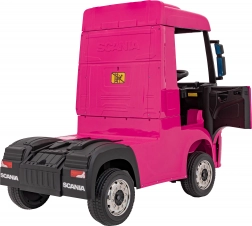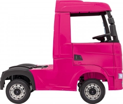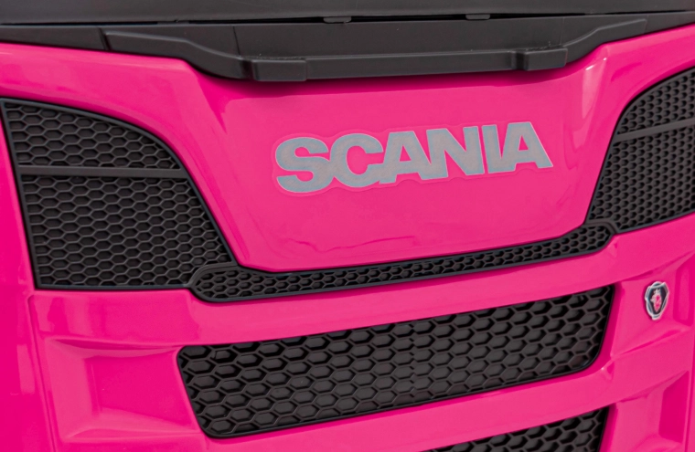 Stylowy pojazd dla dzieci inspirowany kultową ciężarówką SCANIA R-Series w atrakcyjnym, różowym kolorze. Mocne wyposażenie z 4 silnikami 35 W, zasilaniem 2× 12 V 7 Ah, piankowymi kołami EVA oraz otwieranymi drzwiami zapewnia bezpieczną i frajdowną jazdę. Rodzicielski pilot 2,4 GHz z awaryjnym przyciskiem Stop, panel audio z Bluetooth/MP3/USB oraz przednie światła LED czynią z tego modelu doskonały wybór dla małych kierowców.