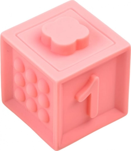 Po naciśnięciu klocki delikatnie piszczą, co pobudza ciekawość i rozwija słuch. Miękki silikon jest bezpieczny dla małych rączek i pierwszych ząbków.