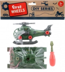 Ta skręcana układanka ucieszy wszystkie ciekawe świata dziewczynki i chłopców, którzy lubią składać i rozkładać. W zestawie znajdziesz szczegółowo wykonane czołg i helikopter, które dziecko łatwo złoży za pomocą dołączonego wkrętaka. Zabawki są wykonane z lekkiego i wytrzymałego plastiku, co zapewnia wygodną i bezpieczną zabawę.