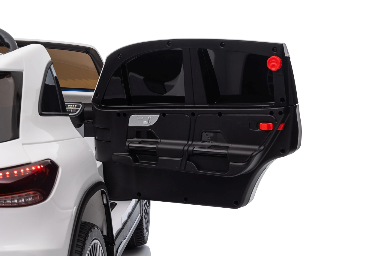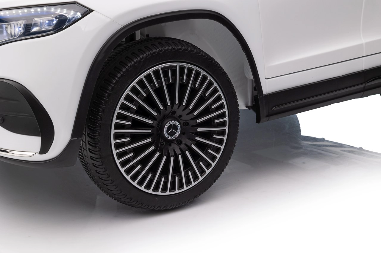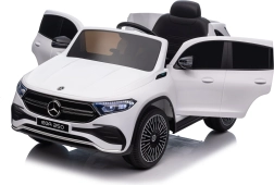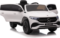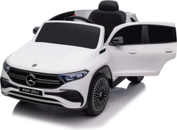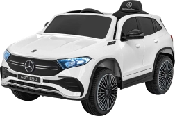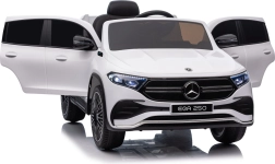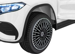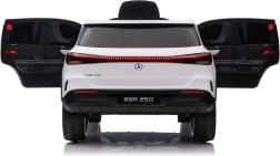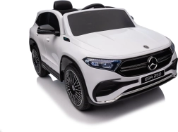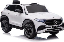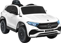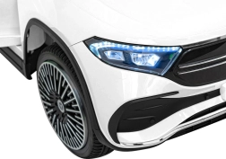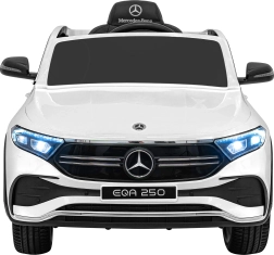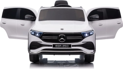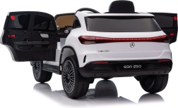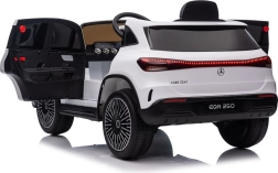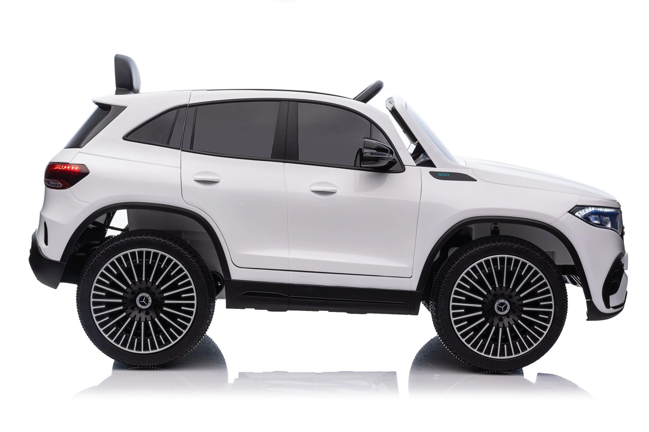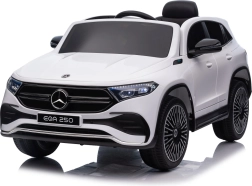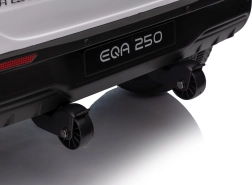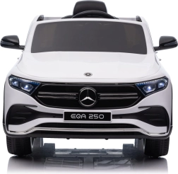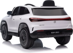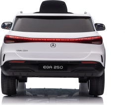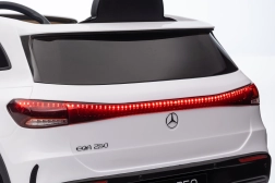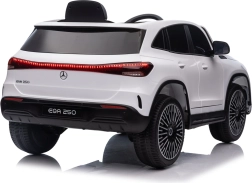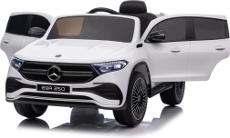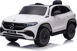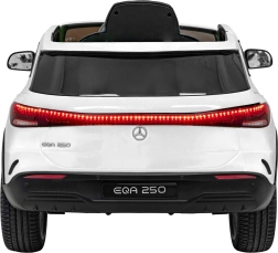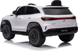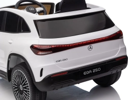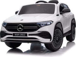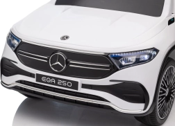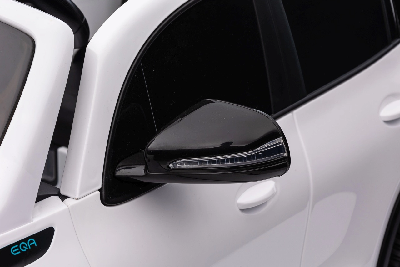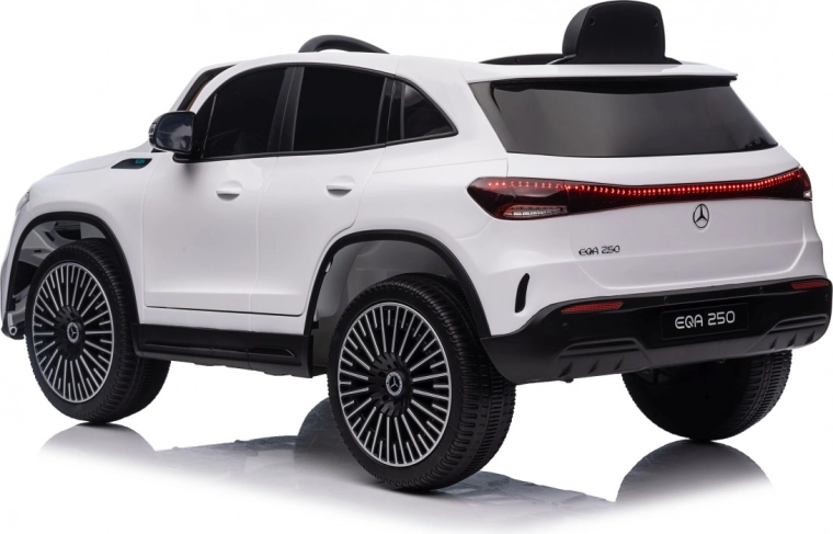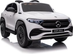 Elektryczny samochodzik MERCEDES-BENZ EQA 250 w białym kolorze łączy premium design z praktycznymi funkcjami. Dzięki czterem silnikom 35 W zapewnia płynną jazdę, a miękkie koła EVA i tylne amortyzatory zwiększają komfort na nierównościach. Płynny start bez szarpania oraz wybór 2 prędkości do przodu/tyłu ułatwiają prowadzenie młodszym kierowcom.