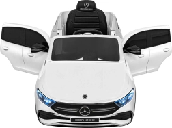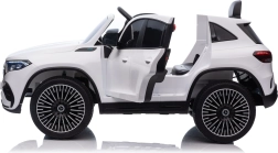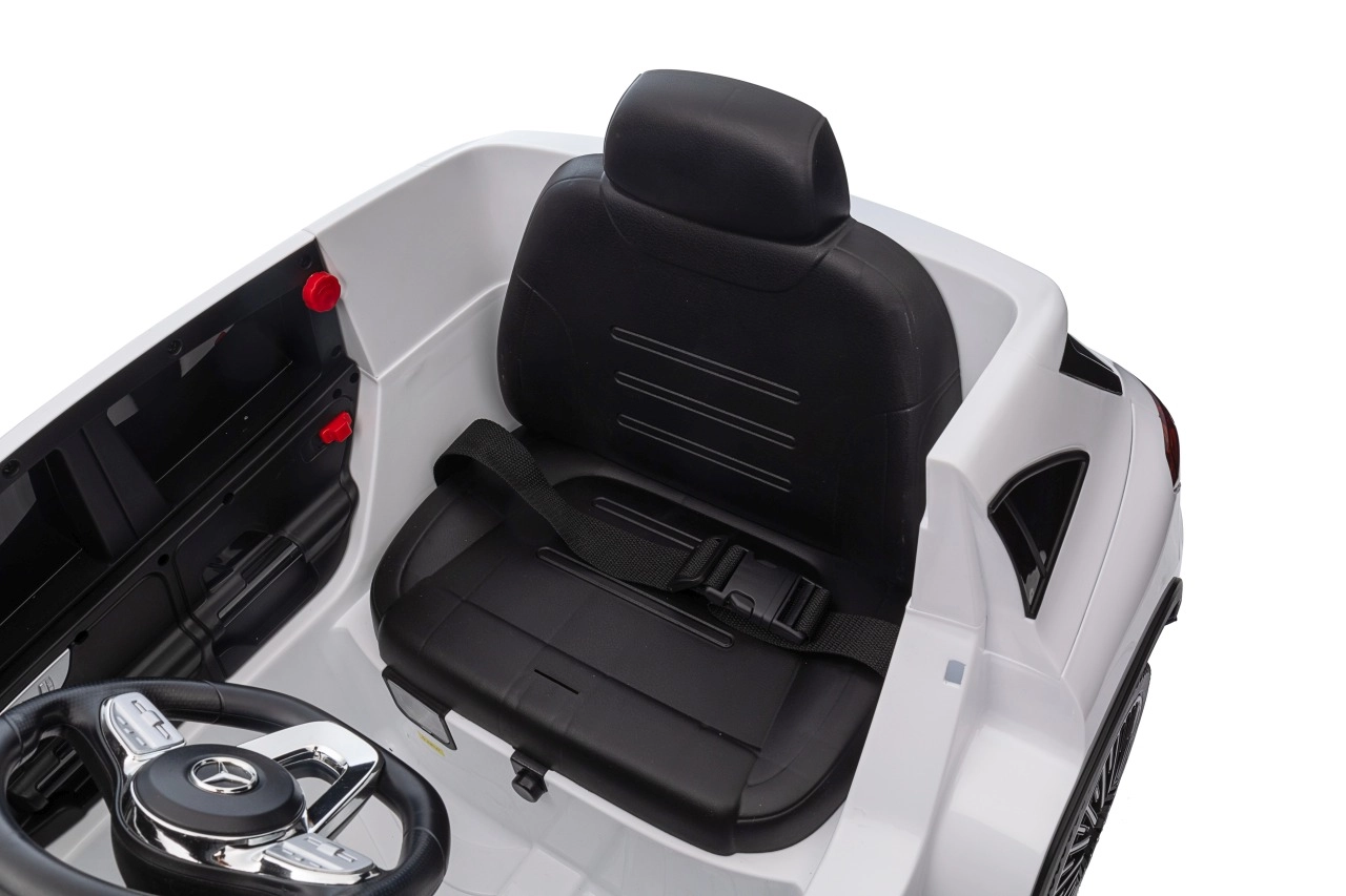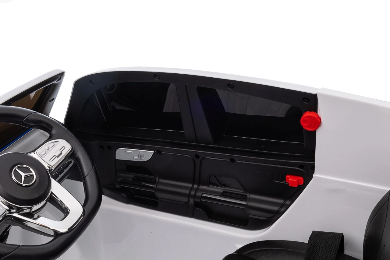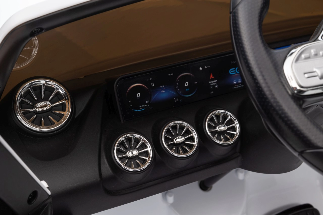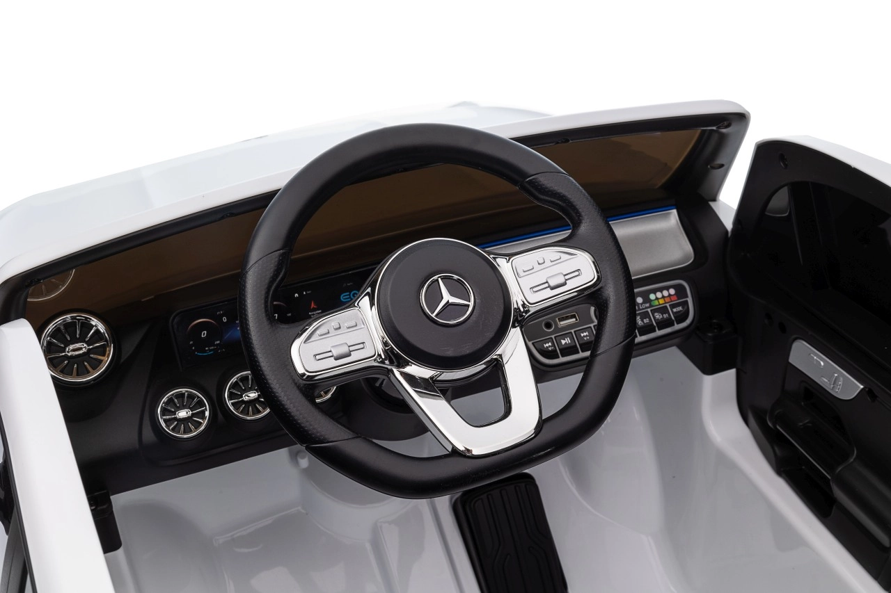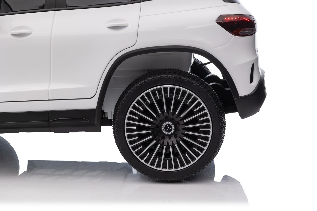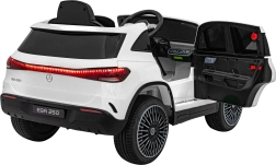 Elektryczny samochodzik MERCEDES-BENZ EQA 250 w białym kolorze łączy premium design z praktycznymi funkcjami. Dzięki czterem silnikom 35 W zapewnia płynną jazdę, a miękkie koła EVA i tylne amortyzatory zwiększają komfort na nierównościach. Płynny start bez szarpania oraz wybór 2 prędkości do przodu/tyłu ułatwiają prowadzenie młodszym kierowcom.