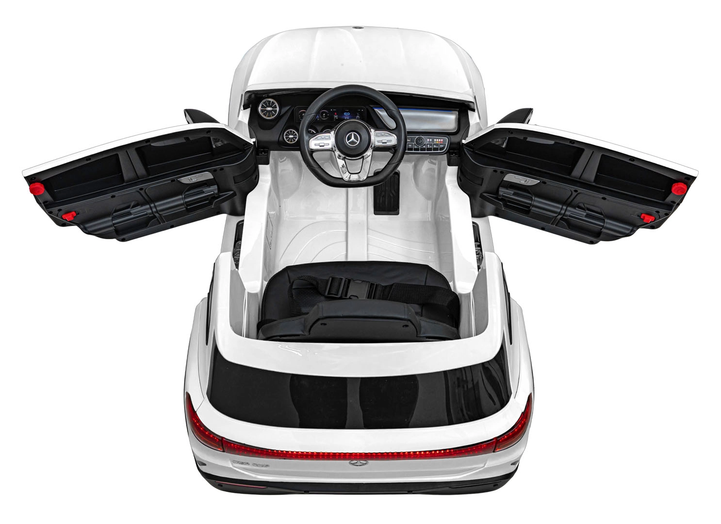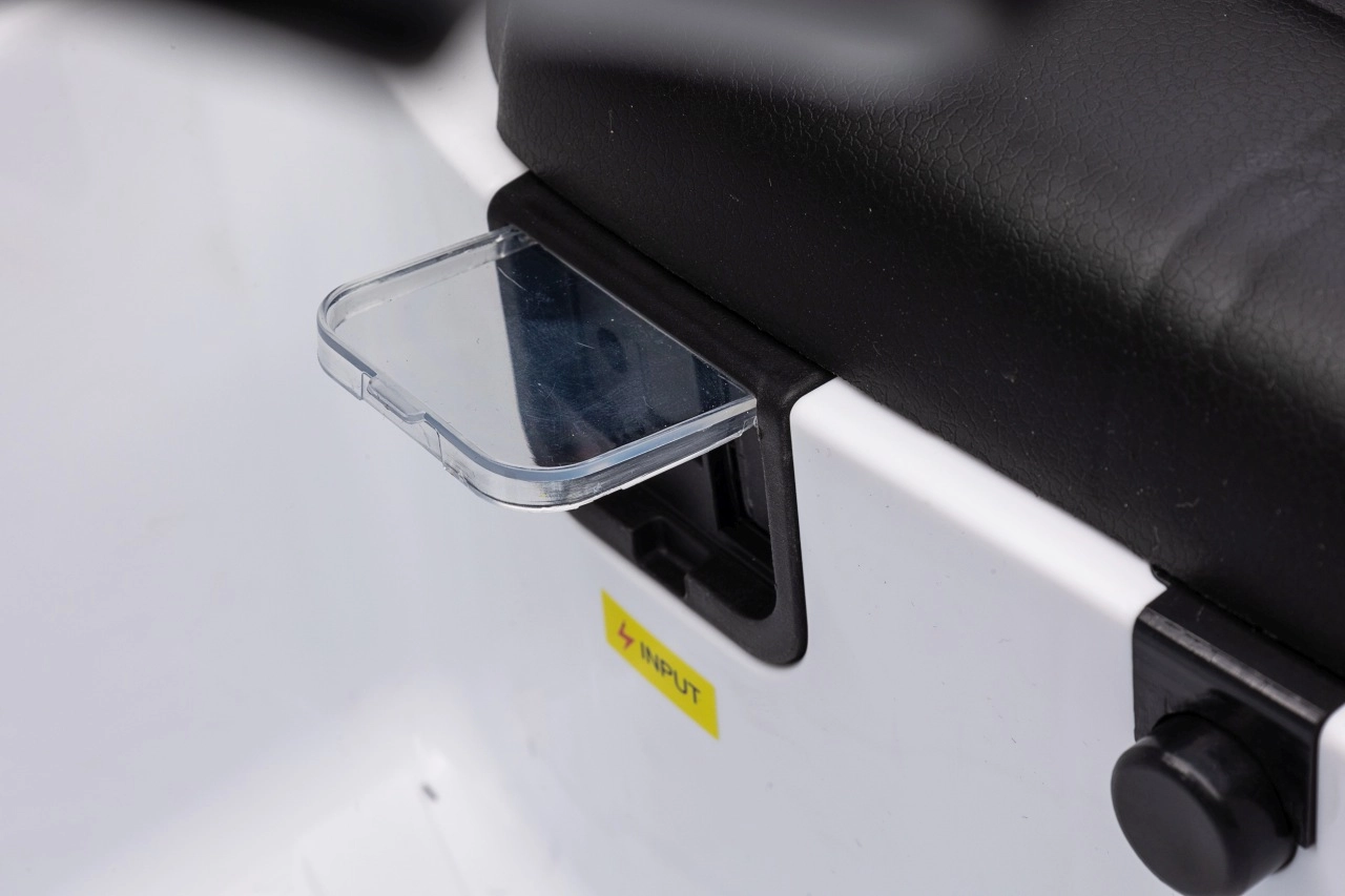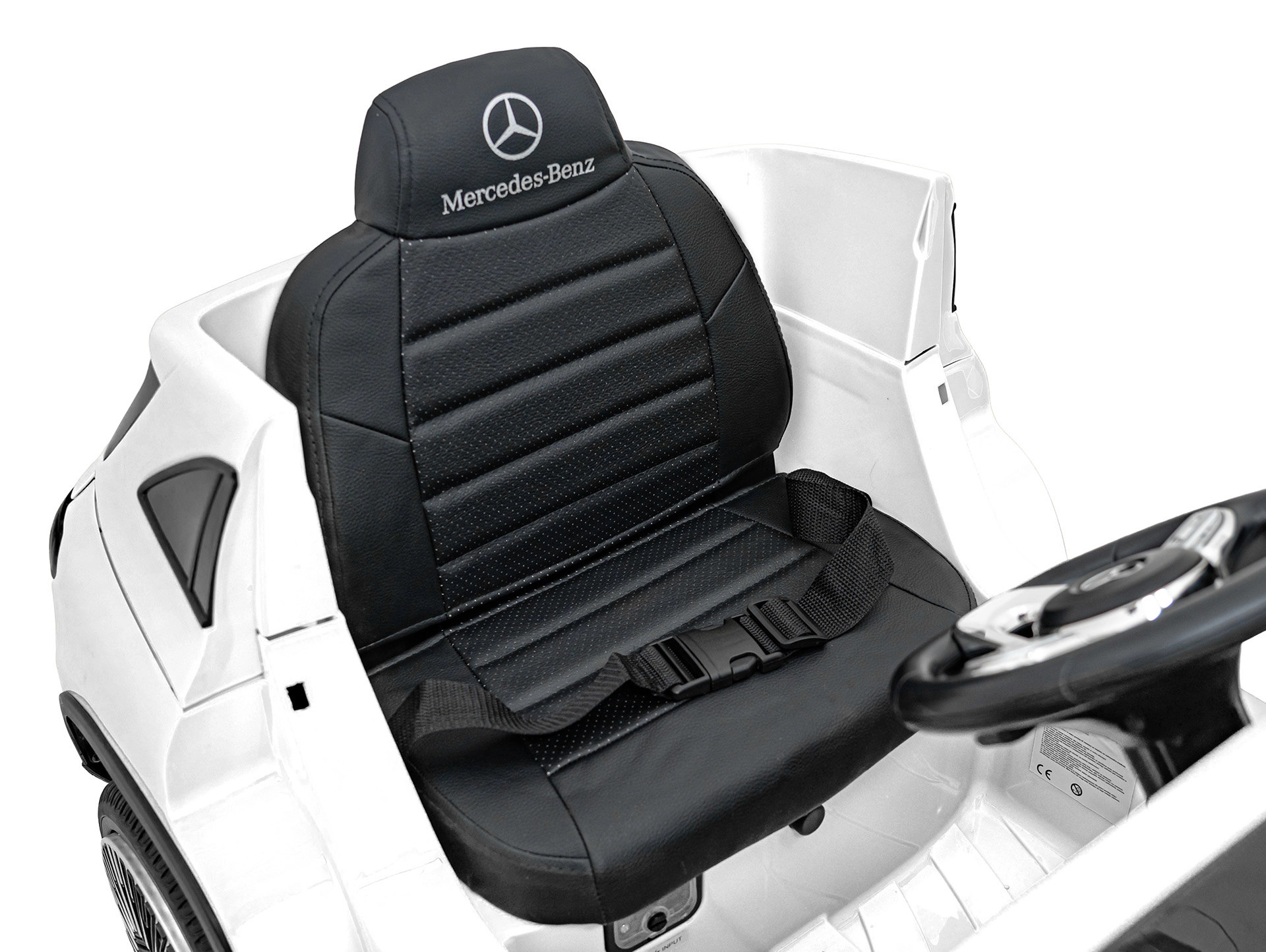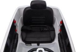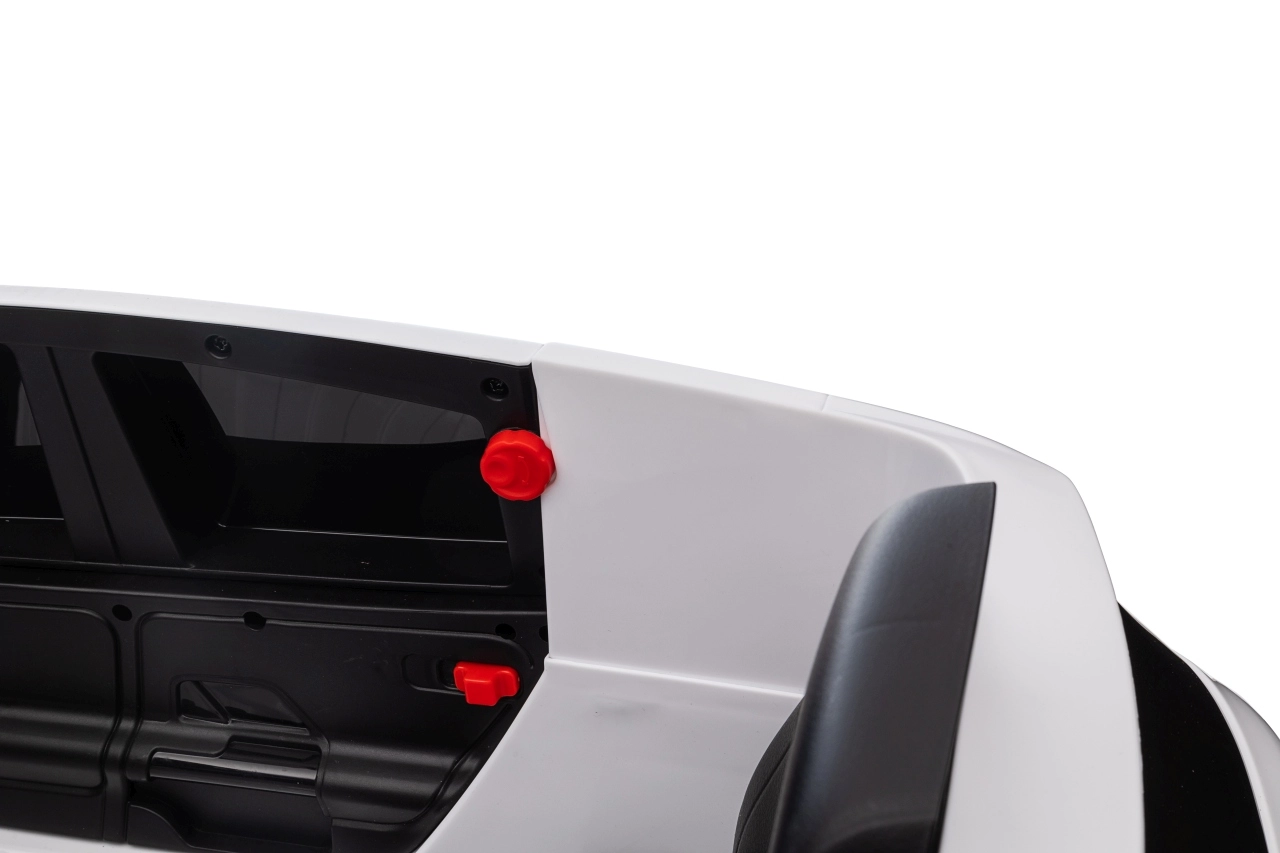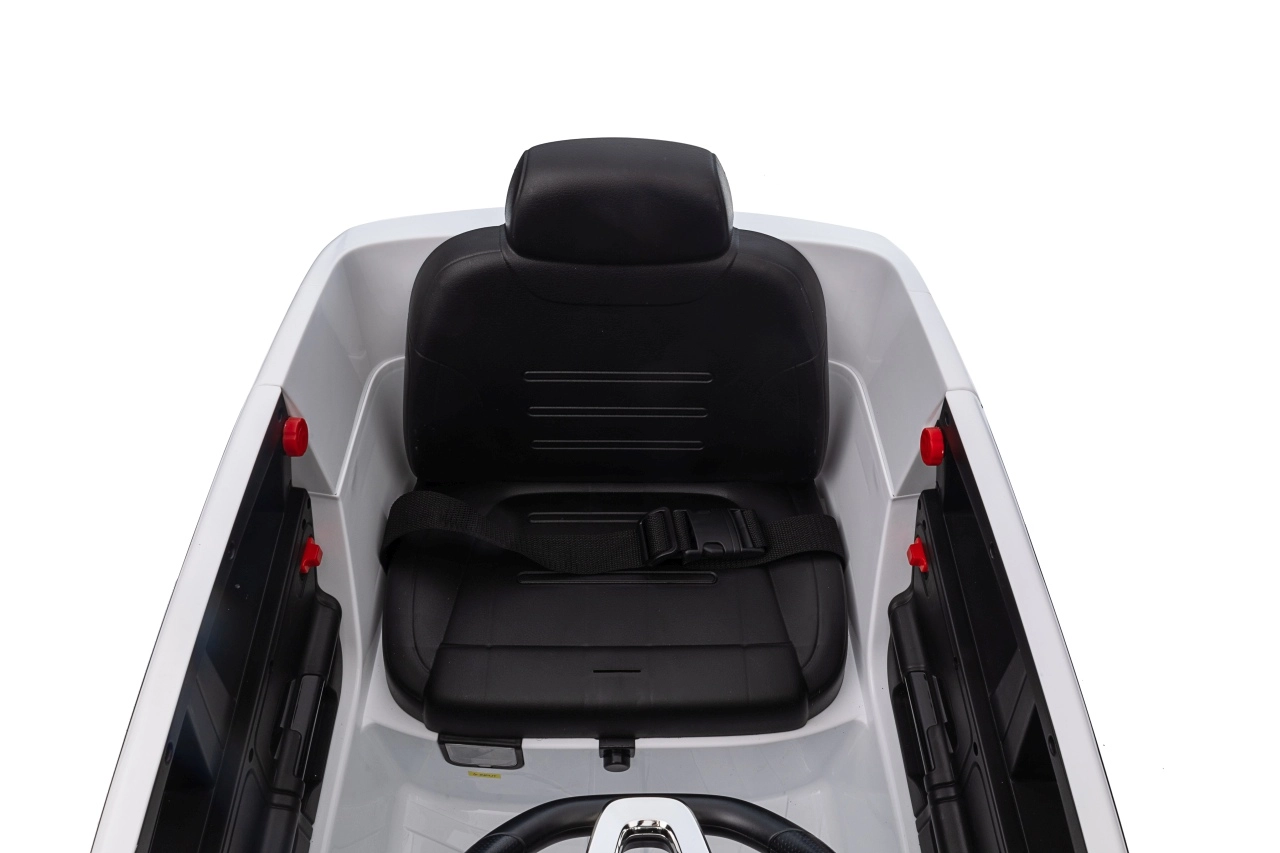 Bezpieczeństwo dzieci gwarantują pas bezpieczeństwa na siedzisku z ekoskóry, solidna konstrukcja oraz pilot 2,4 GHz z funkcją Emergency Stop dla rodziców. Funkcjonalne światła LED z przodu i z tyłu oraz wyłącznik świateł dodają realizmu i poprawiają widoczność.