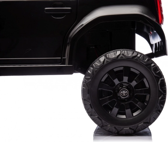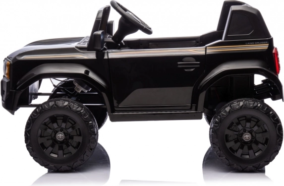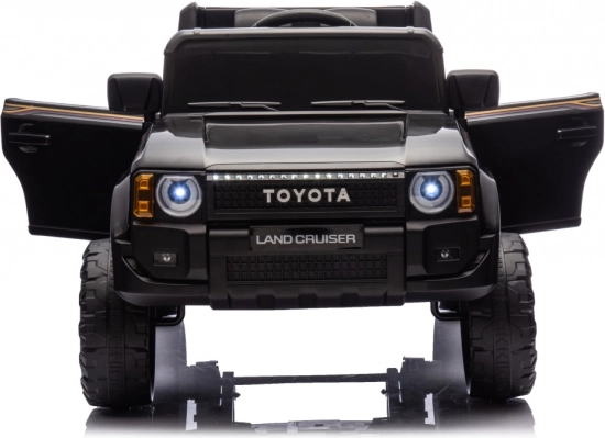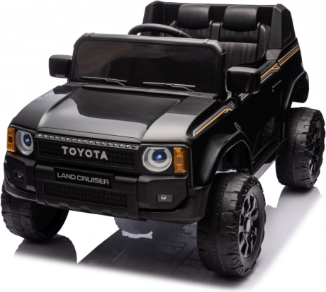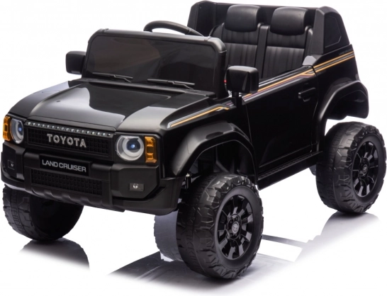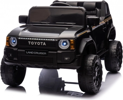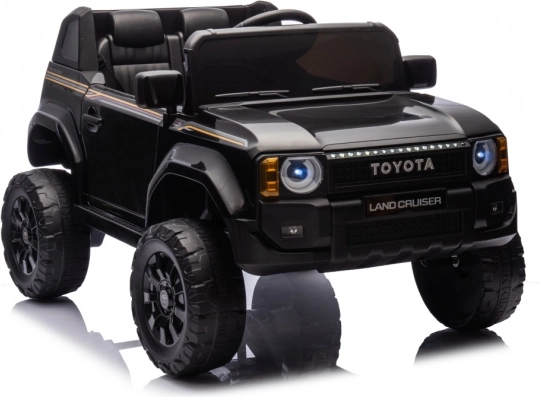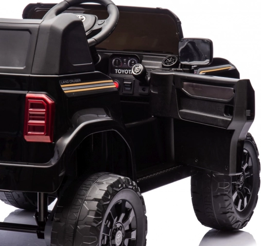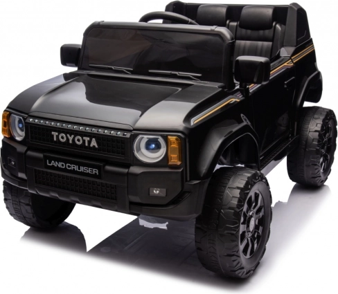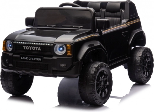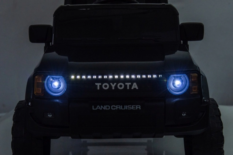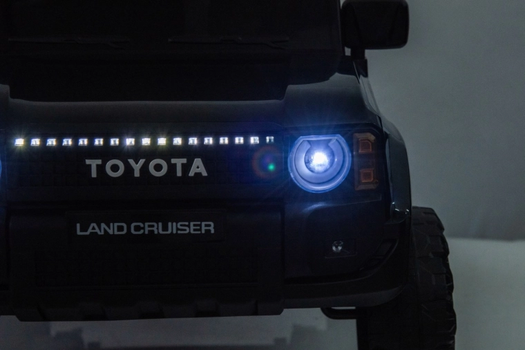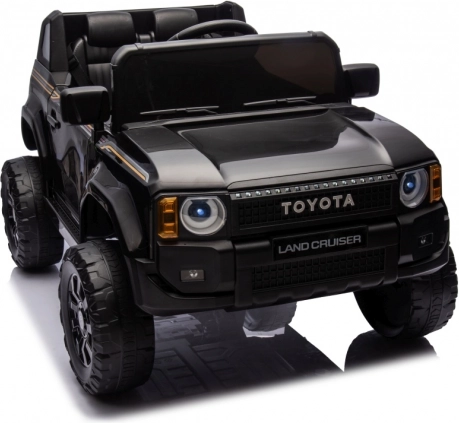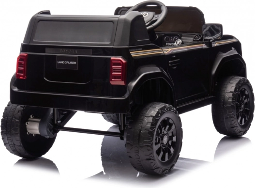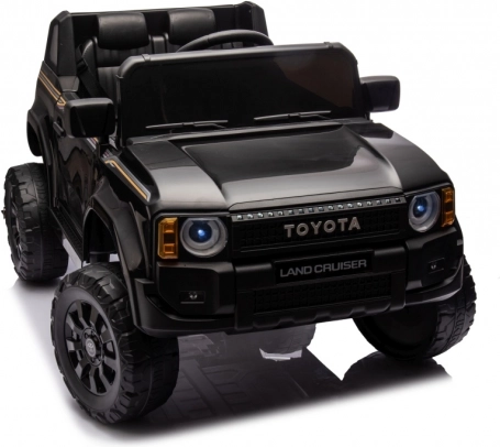 Stylowy dziecięcy elektryczny samochodzik TOYOTA LAND CRUISER PRADO w czarnym kolorze zachwyca realistycznym wyglądem, napędem 12 V, komfortowym siedziskiem z eko skóry oraz miękkimi kołami EVA dla cichej jazdy. Na pokładzie są światła LED, panel audio z MP3/USB/Bluetooth oraz zdalne sterowanie 2,4 GHz z przyciskiem bezpieczeństwa Stop.