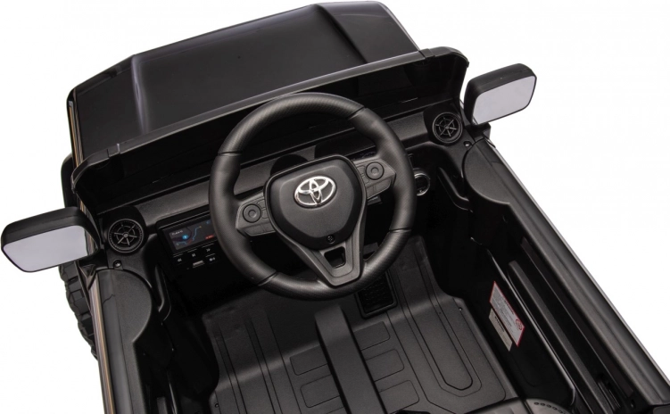 Komfort zapewnia siedzisko z eko skóry z pasami bezpieczeństwa, a o klimat jazdy dbają przednie światła LED z włącznikiem. Panel audio z MP3, USB, Bluetooth oraz klaksonem na kierownicy urozmaici każdą przejażdżkę.