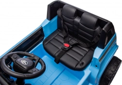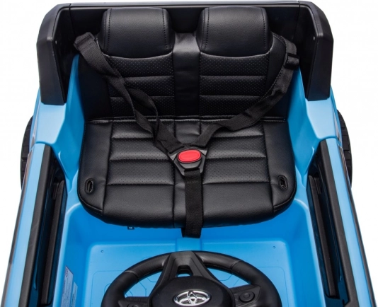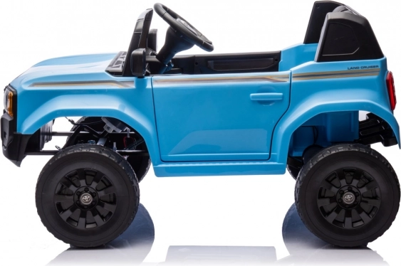 Stylowy samochodzik dla dzieci TOYOTA Land Cruiser PRADO w kolorze niebieskim oferuje 2 wydajne silniki, akumulator 12 V / 7 Ah, miękkie koła EVA oraz skórzane siedzenie z pasami. Dzięki otwieranym drzwiom, światłom LED i panelowi audio z MP3/USB/Bluetooth dzieci cieszą się realistyczną jazdą, a rodzice zyskują spokój dzięki pilotowi 2,4 GHz z przyciskiem STOP.