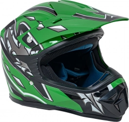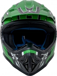 Ten zielony kask motocrossowy i enduro łączy niską masę z wysokim poziomem bezpieczeństwa dzięki wytrzymałej skorupie z ABS. Innowacyjny system wentylacji utrzymuje głowę w suchości i komforcie nawet podczas wymagającej jazdy w terenie, a regulowany daszek chroni przed słońcem i odpryskami zanieczyszczeń.