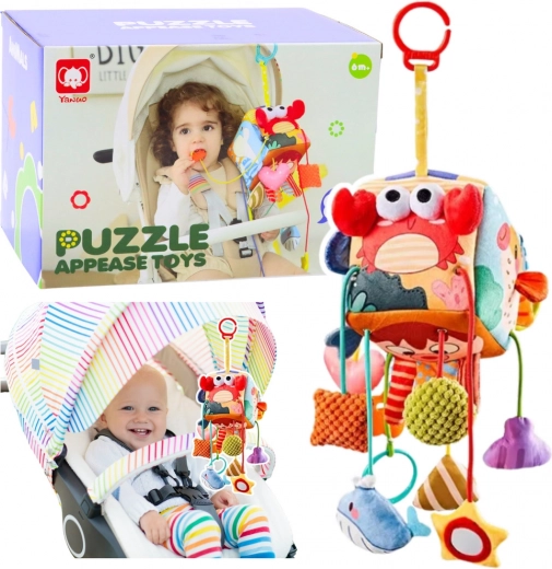 Dzięki praktycznej zawieszce kostkę można łatwo przymocować do wózka lub łóżeczka, co umożliwia wygodne użytkowanie w domu i w podróży.