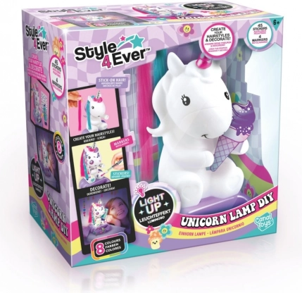 Stwórz własną, magiczną dekorację z kreatywnym zestawem Style4Ever – lampką w kształcie jednorożca, którą dzieci udekorują samodzielnie. Zestaw zapewnia zabawną twórczość, 8 kolorów światła dla przytulnej atmosfery oraz wiele możliwości personalizacji za pomocą flamastrów, naklejek i kolorowych pasemek włosów.