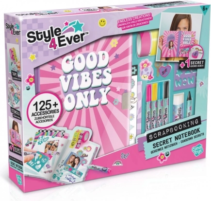 Odkryj kreatywny świat z zestawem Style4Ever tajny pamiętnik z dekoracjami. Pamiętnik z zamkiem chroni Twoje sekrety, a bogate wyposażenie – flamastry, naklejki, szablony i więcej – wspiera kreatywność, sprawność manualną i koncentrację dzieci od 6 lat.