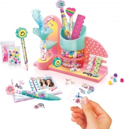 Biurkowy zestaw na artykuły piśmiennicze Style4Ever zamieni każde stanowisko pracy w strefę kreatywności. Dzieci mogą spersonalizować stojak na ołówki i inne przybory za pomocą naklejek, koralików oraz dekoracyjnych woreczków. Wszystko zaprojektowano tak, aby efekt był jedyny w swoim rodzaju i praktyczny.