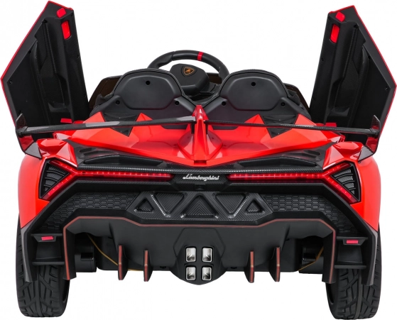 Spełnij dziecięce marzenie o jeździe supersamochodem. Elektryczne auto LAMBORGHINI Veneno w intensywnie czerwonym kolorze łączy topowe osiągi i bezpieczeństwo: cztery silniki 4×45 W, podwójny akumulator 12 V 7 Ah ×2, płynny start oraz dwa biegi do przodu/tyłu. Solidne koła EVA, tylne zawieszenie i prześwit 10 cm zapewniają wygodną jazdę również po nierównościach.