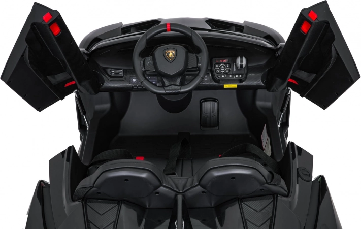 Spełnij dziecięce marzenie o supersamochodzie: licencjonowany elektryczny samochodzik LAMBORGHINI Veneno w eleganckiej czerni ma 4×45 W silniki, podwójny akumulator 12 V, otwierane do góry drzwi, światła LED z przodu i z tyłu oraz wygodne siedzenie z eko skóry z pasami bezpieczeństwa. Rodzicielski pilot 2,4 GHz z przyciskiem Stop i wyborem 3 prędkości zapewnia bezpieczną zabawę. Panel multimedialny oferuje Bluetooth, USB, MP3 i radio FM.