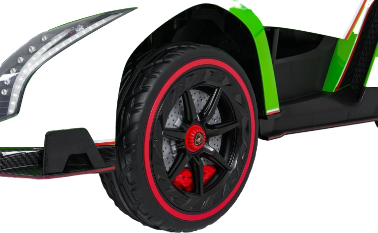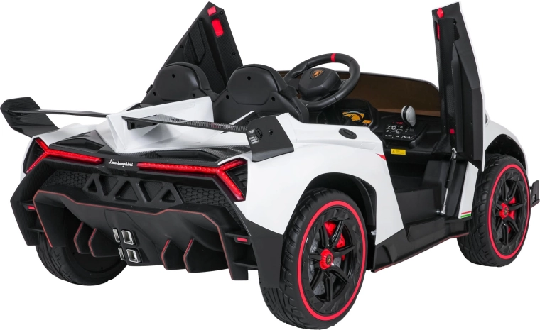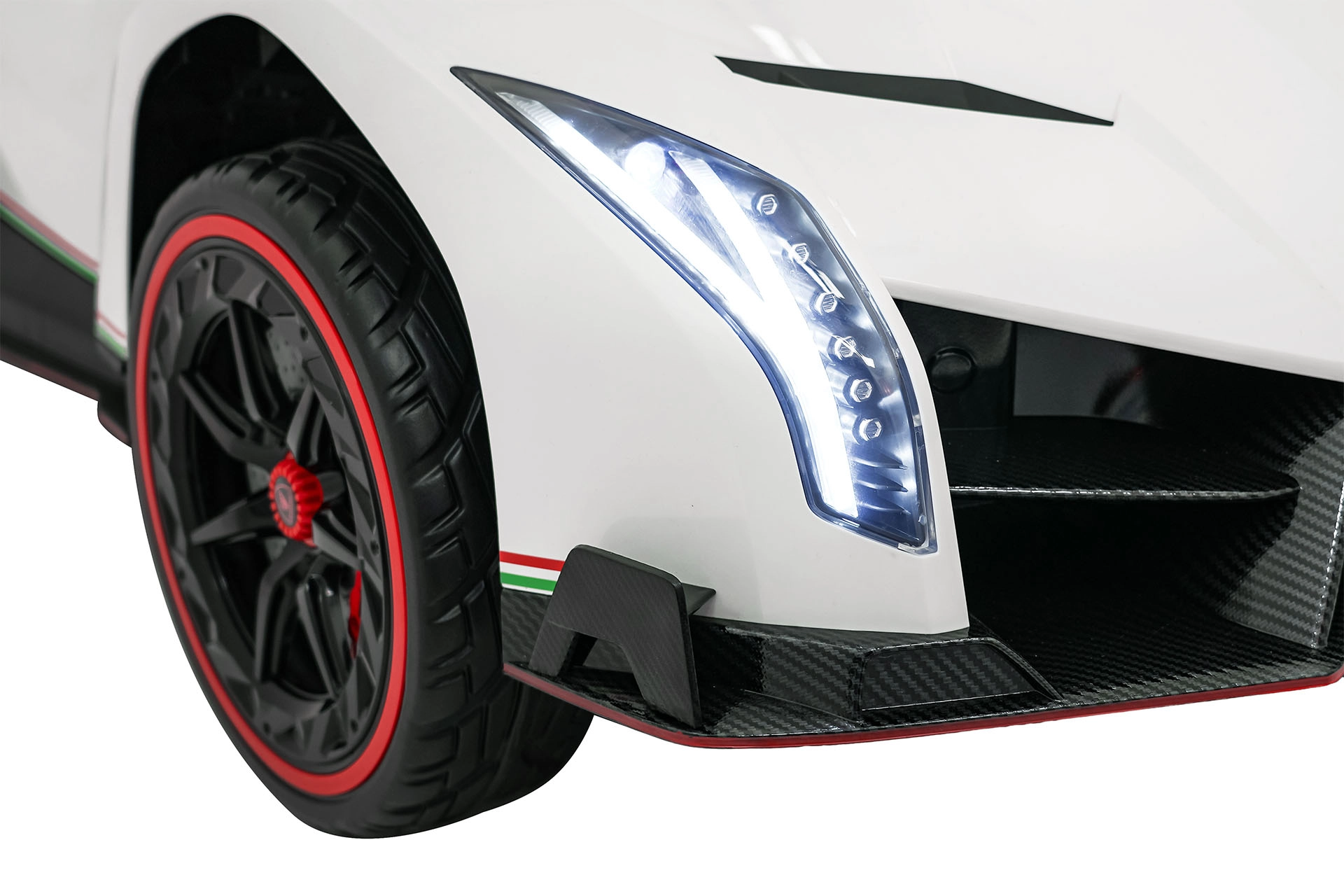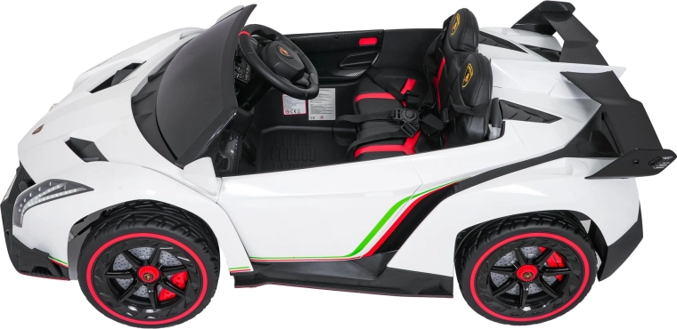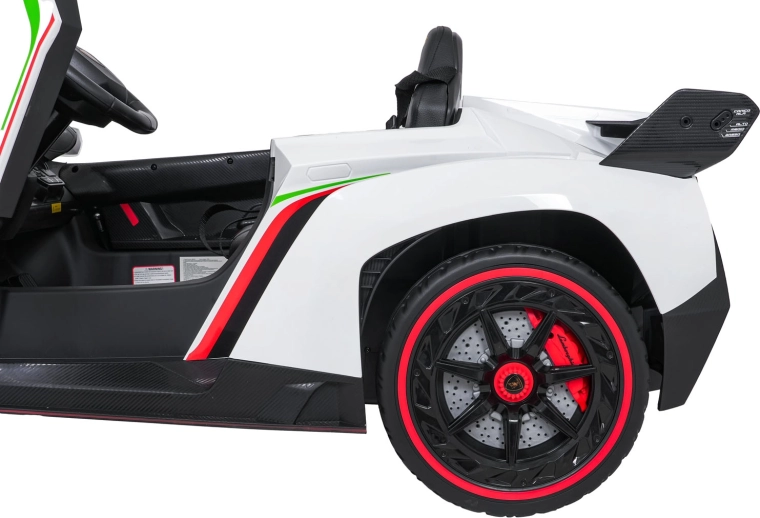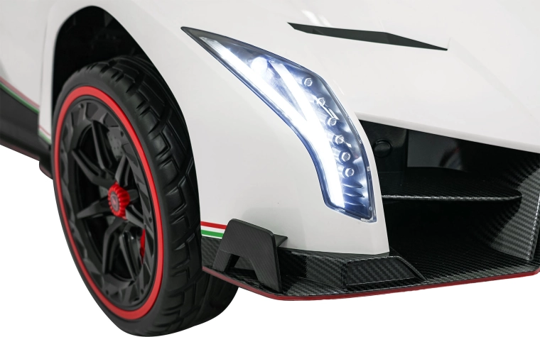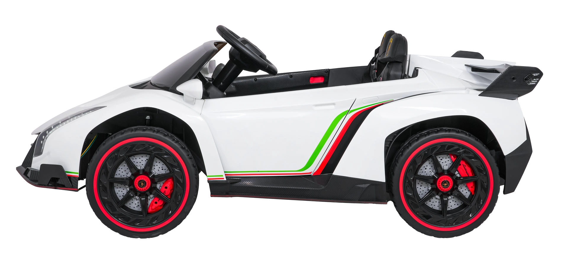 Spełnij dziecięce marzenie o jeździe supersamochodem. Elektryczne auto LAMBORGHINI Veneno w intensywnie czerwonym kolorze łączy topowe osiągi i bezpieczeństwo: cztery silniki 4×45 W, podwójny akumulator 12 V 7 Ah ×2, płynny start oraz dwa biegi do przodu/tyłu. Solidne koła EVA, tylne zawieszenie i prześwit 10 cm zapewniają wygodną jazdę również po nierównościach.