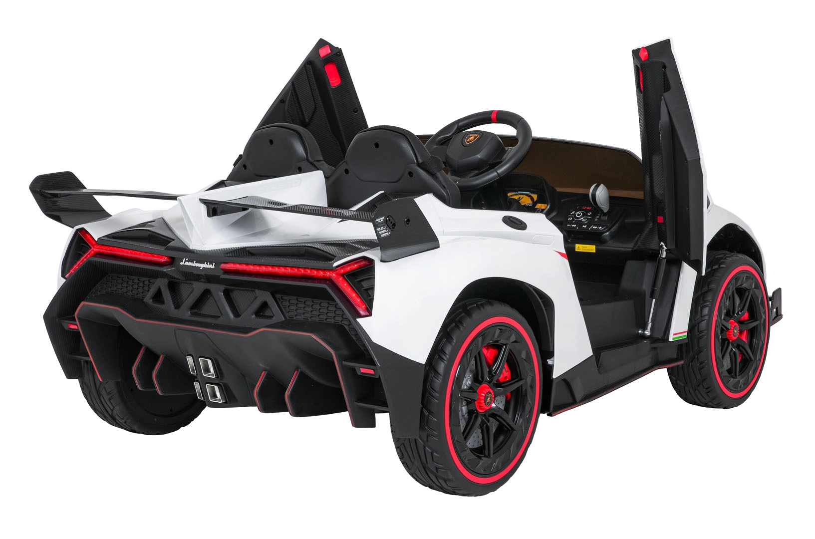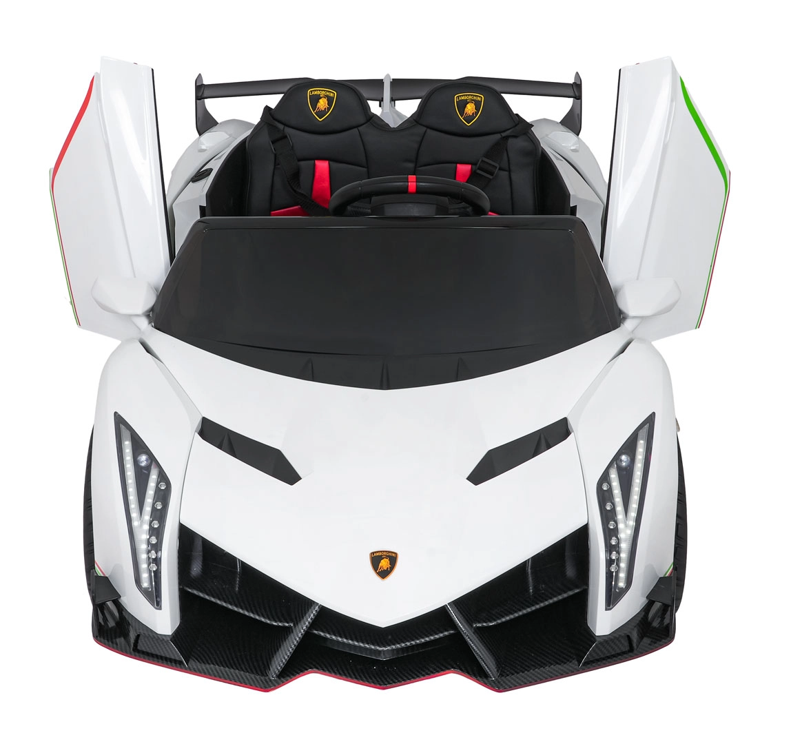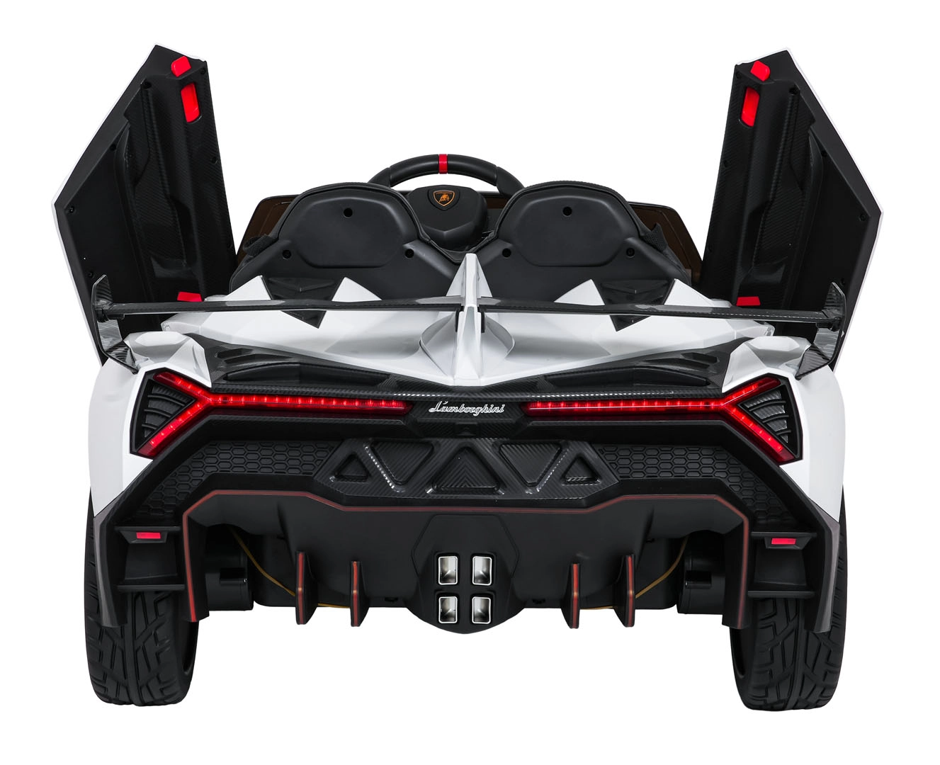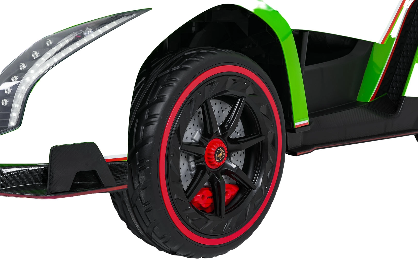 Spełnij dziecięce marzenie o jeździe supersamochodem. Elektryczne auto LAMBORGHINI Veneno w intensywnie czerwonym kolorze łączy topowe osiągi i bezpieczeństwo: cztery silniki 4×45 W, podwójny akumulator 12 V 7 Ah ×2, płynny start oraz dwa biegi do przodu/tyłu. Solidne koła EVA, tylne zawieszenie i prześwit 10 cm zapewniają wygodną jazdę również po nierównościach.