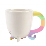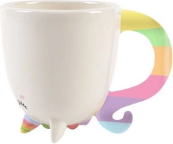 Biała ceramika z tęczowym uchem/ogonkiem i delikatną buźką wygląda uroczo i oryginalnie. Idealna ozdoba i kubek na co dzień.