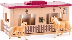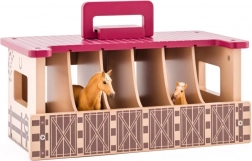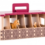 Stajnia wykonana jest z wysokiej jakości drewna i zaprojektowana tak, aby wytrzymać codzienną zabawę. Sześć oddzielnych boksów umożliwia przejrzyste przechowywanie figurek koni i akcesoriów. Idealna jako prezent dla małych miłośników zwierząt i koni.
