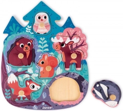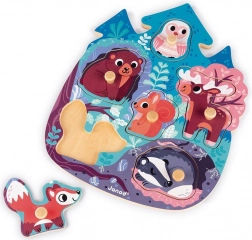 Odkryj zabawną drewnianą układankę z sześcioma leśnymi zwierzątkami, która rozwija małą motorykę, spostrzegawczość i pamięć dzieci. Dzięki drewnianym uchwytom elementy łatwo się wkłada, a solidna podstawa z ramkami pomaga utrzymać zwierzątka na swoim miejscu. Świetna do pierwszego poznawania sowy, niedźwiedzia, jelenia, wiewiórki, liska i borsuka. Odpowiednia od 12 miesięcy.