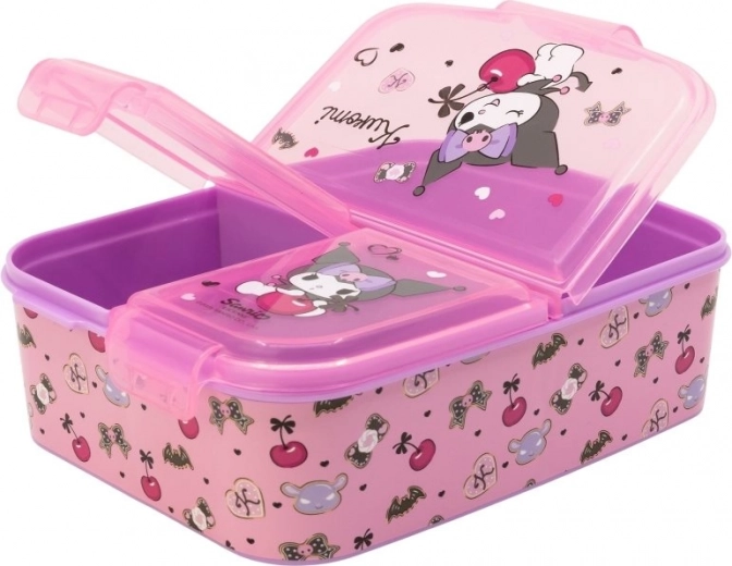 Koniec z pomieszanymi przekąskami. Multi box STOR z licencjonowanym motywem KUROMI ma jedną dużą i dwie mniejsze przegródki, więc łatwo oddzielisz owoce i warzywa od kanapki czy słodkości. Wytrzymała konstrukcja sprawdza się w codziennym użytkowaniu i znosi okazjonalne upadki.