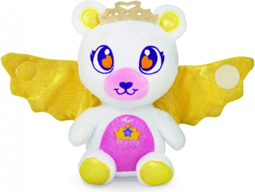 Każdy miś ma delikatną, miękką powierzchnię, złotą koronę i lśniące skrzydła – idealny do przytulania i fantastycznych zabaw.
