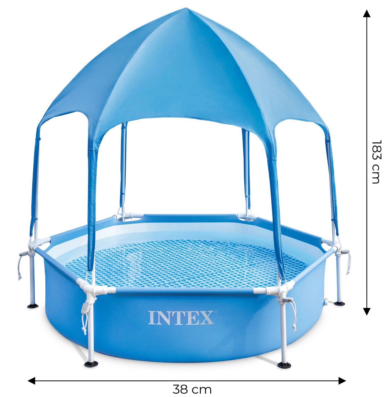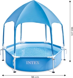 Przedstawiamy okrągły dziecięcy basen stelażowy INTEX z ochroną przed słońcem, idealny na upalne letnie dni w ogrodzie. Ten basen został zaprojektowany, aby zapewnić dzieciom beztroską zabawę i wspaniałe wrażenia!