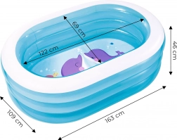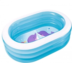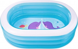 Morski design z motywami delfinów, żółwi i bąbelków pobudza wyobraźnię i kreatywność, co prowadzi do niezapomnianych przygód podczas każdej kąpieli. Wykonany z wysokiej jakości materiału zapewniającego solidność i stabilność dzięki trzem nadmuchiwanym pierścieniom.