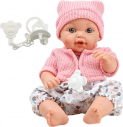 W skład zestawu wchodzi smoczek na łańcuszku, który można przypiąć do ubrania, dodając zabawie autentyczności. Lalka jest wykonana z trwałego plastikowego materiału, jest lekka, praktyczna i przyjemna w dotyku – idealna do codziennej zabawy, przytulania i również do podróży.