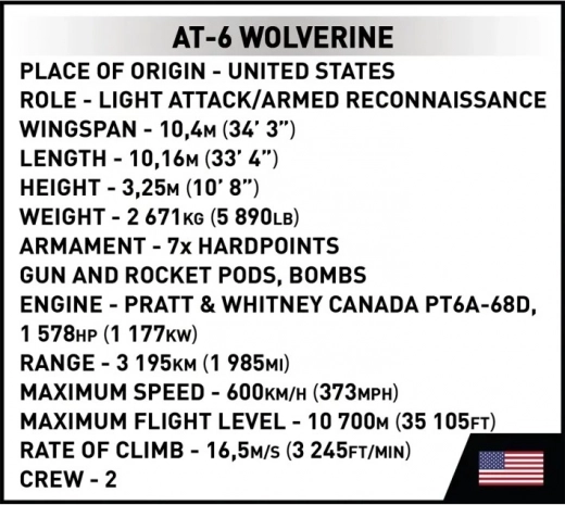 Zestaw do montażu modelu AT-6 Wolverine od COBI oferuje wyjątkową możliwość zbudowania maszyny łączącej tradycję z nowoczesnością. Instrukcja oparta na czytelnych rysunkach i ikonach sprawia, że montaż jest intuicyjny, a satysfakcja z ukończenia modelu tym większa, im więcej detali uda się odwzorować.
